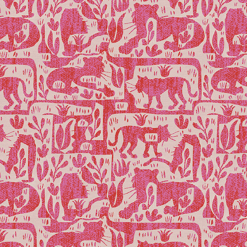 View the world with new eyes where leaves are deep teals, tigers are bold oranges, and anywhere you look there’s a splash of bright pink florals. Encounter wild plant life and terrific tigers in these trendy new prints.