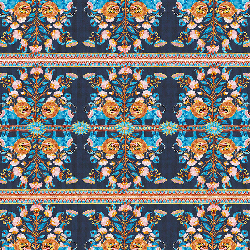 Indian Odyssey is a stunning and exotic collection of prints that celebrate the rich cultural heritage and artistry of India. The collection features intricate and ornate designs in bright reds, gold and blues, inspired by Indian textiles, architecture and motifs. Escape to India through your next project!