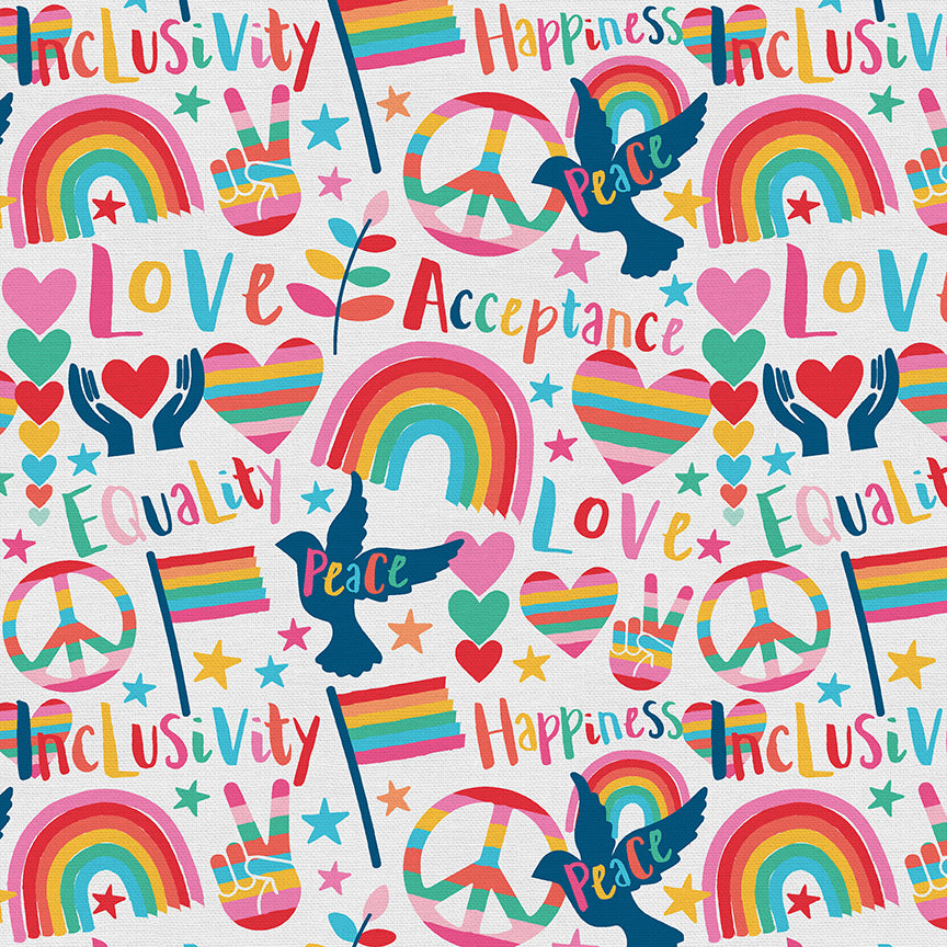 Cheery rainbow colors and bold prints celebrating all things Pride combine to bring you Bright Love. This colorful collection is focused on Pride, Inclusivity, and most of all, Love. These designs will bring a fun energy to your sewing projects - from quilts to home décor to tote bags! Let your imagination run wild with these designs!
