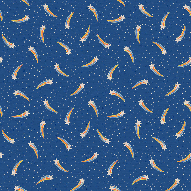 Iris + Sea's collection, Dino Daydreams, explores childlike adventure in a new way through motifs centering around nature and science. Sprinkled throughout you will find whimsical interpretations of dinosaurs, flowers, rainbows, and celestial motifs, evoking many places where children wonder and day dream. This collection is sure to spark joy, creativity and adventure year around and is perfect for your crafting and quilting projects in both the sweet and primary colorways!