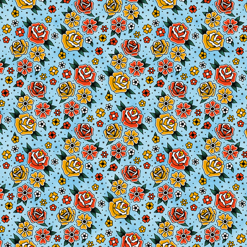 Timeless Tattoos is a bold and vibrant fabric collection that captures the spirit of classic Americana tattoo art. With iconic designs like anchors, roses, swallows, lucky dice and skulls, each print showcases the timeless style of traditional tattoos—bold lines, rich colors, and a rebellious edge. Perfect for quilting, apparel, and statement pieces, this collection brings the inked aesthetic to life with a touch of nostalgia and a whole lot of attitude.