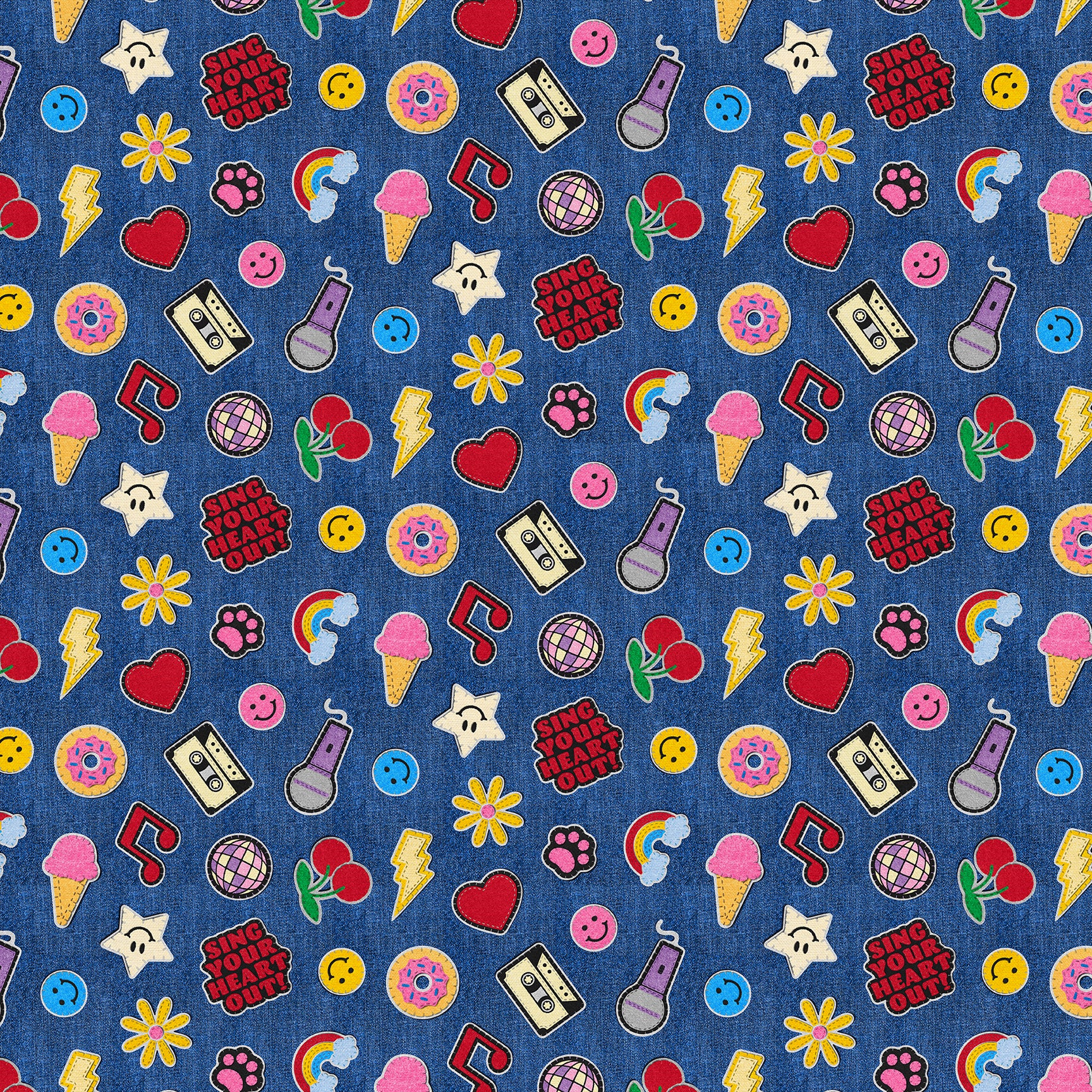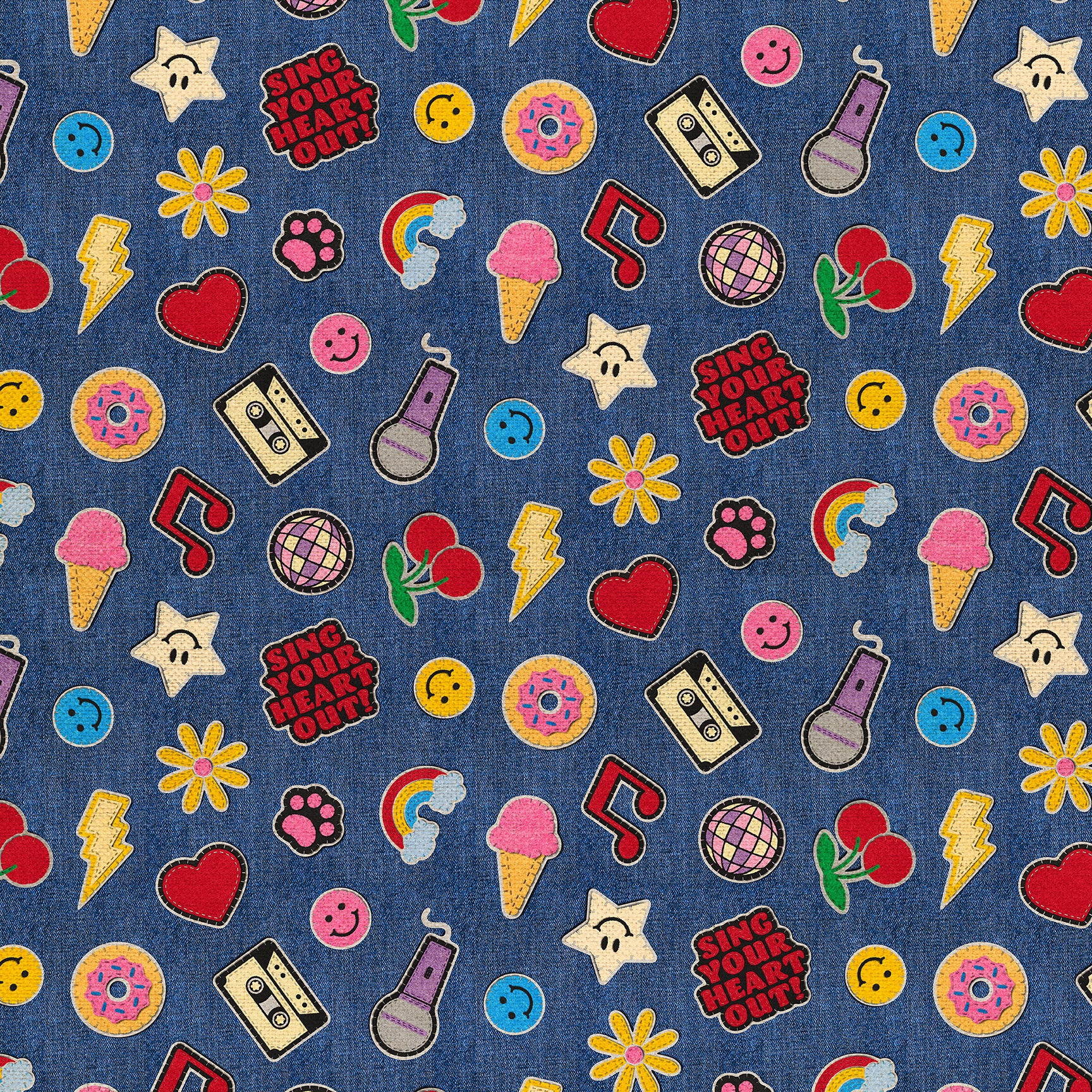 Patch Perfect brings the fun of iron-on patches to bold denim-inspired prints. From sports and music to sweets and girly flair, each design celebrates a different hobby or vibe. Set on shades like classic blue, lime green, and electric pink, this collection is made for projects with personality.