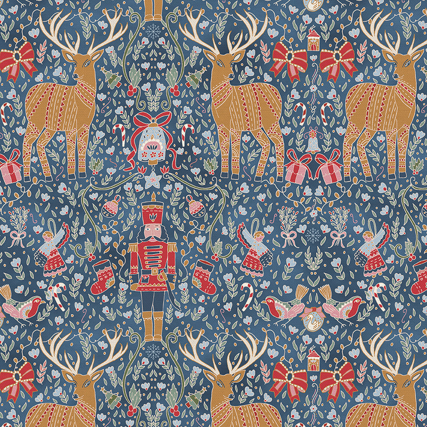 Joy to the World by Quirky Paisley Designs is a collection inspired by the magic of the holiday season, much like opening a cherished vintage Christmas trunk, where memories of generations past unfold. Imagine lifting the lid and discovering a timeworn fabric adorned with whimsical scenes—Santa soaring above snow-kissed rooftops in a charming village.