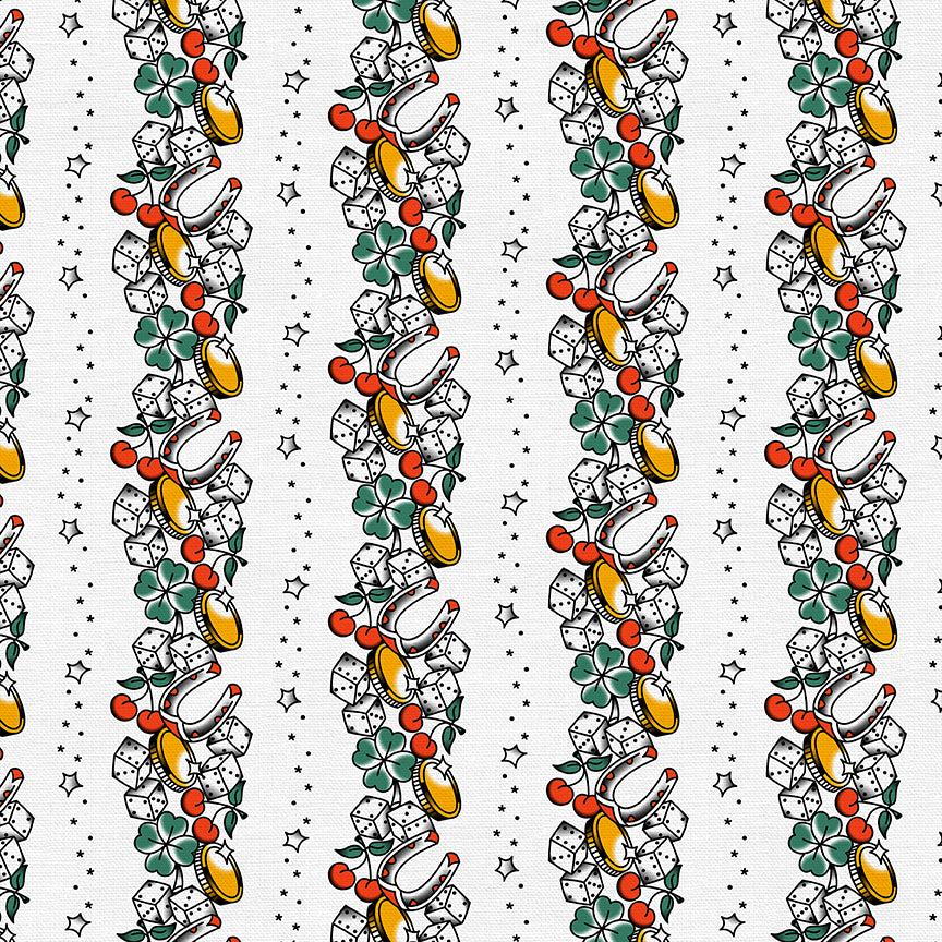 Timeless Tattoos is a bold and vibrant fabric collection that captures the spirit of classic Americana tattoo art. With iconic designs like anchors, roses, swallows, lucky dice and skulls, each print showcases the timeless style of traditional tattoos—bold lines, rich colors, and a rebellious edge. Perfect for quilting, apparel, and statement pieces, this collection brings the inked aesthetic to life with a touch of nostalgia and a whole lot of attitude.