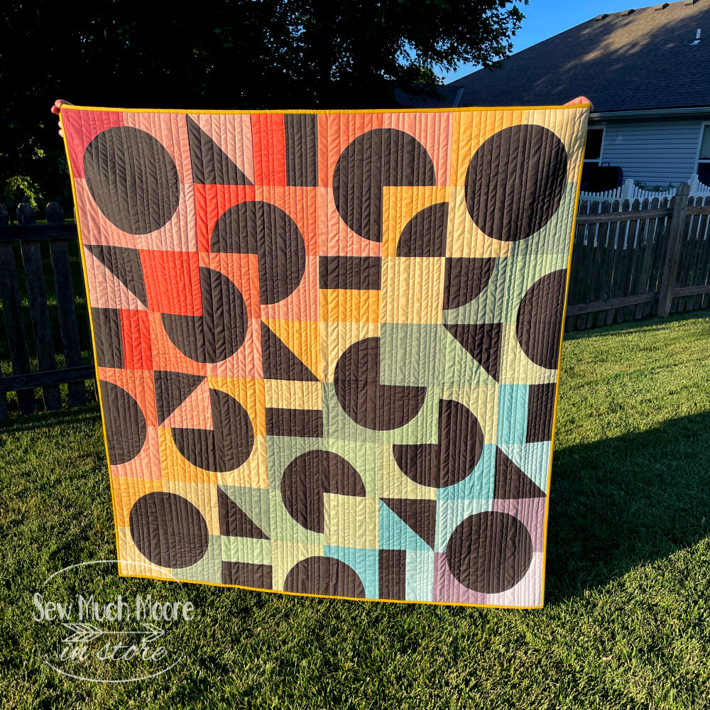 Turntables is a modern quilt design, which showcases a rainbow of solid fabrics.